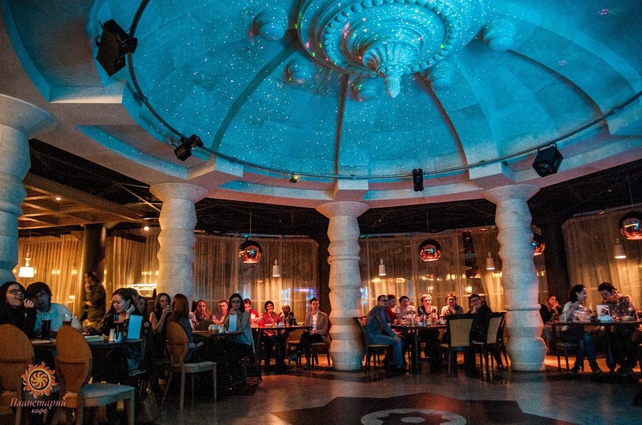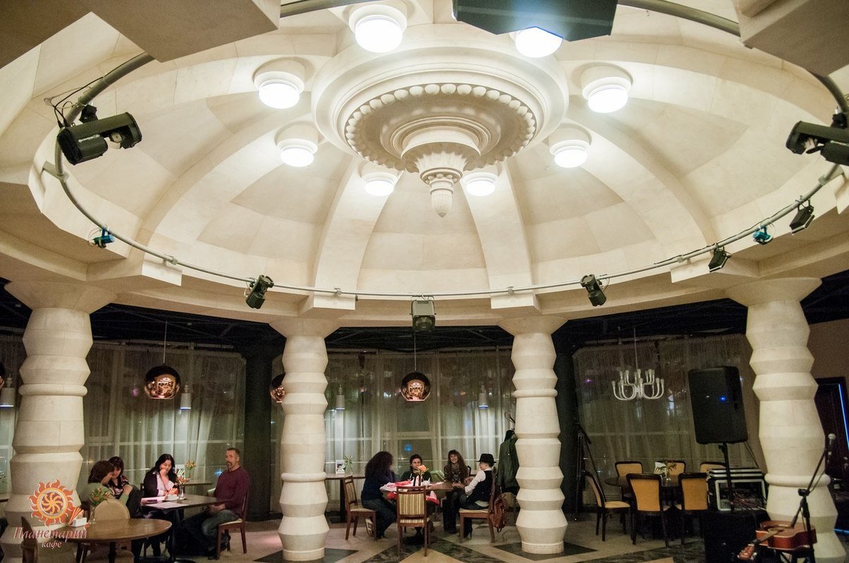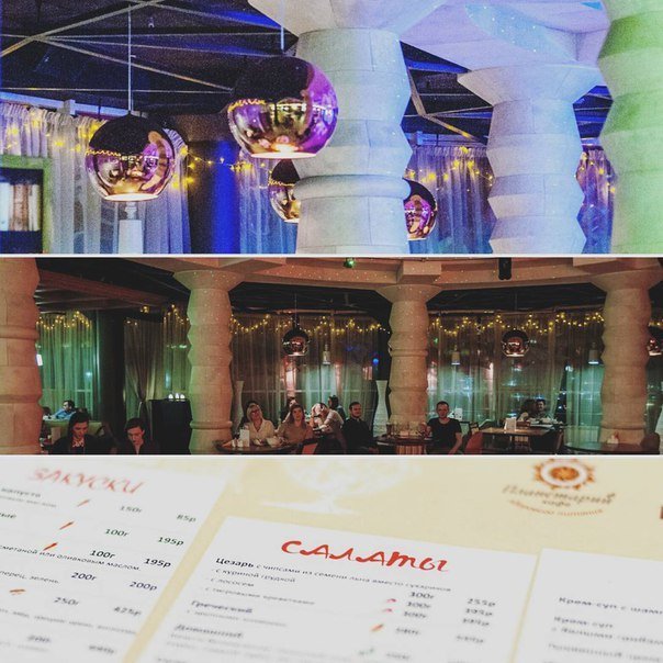 Наш ресторан находится на крыше и открывает потрясающий панорамный обзор! Он славится не только своим меню и баром - мы привлекаем оформлением снаружи и внутри. Если вы цените стиль, равно как и вкус, приходите в наш ресторан. Когда за окном тепло, гораздо приятнее бывать не в помещениях, а на улице. И не только чтобы прогуляться, но и перекусить. Именно поэтому у кафе здорового питания Планетарий есть своя терраса с приятным видом.